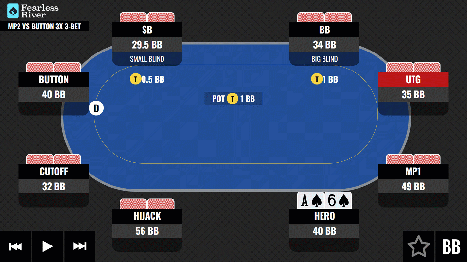 | MTT | MP2 Open Vs Button 3x 3-Bet 8-Handed | 33.1 BBs |