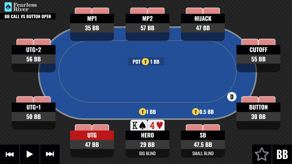 | MTT | Button Open Vs Big Blind Call | 47.5 BBs |